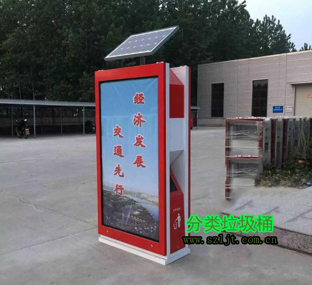 戶外太陽能綠色環保廣告垃圾桶(tǒng)生產製作常用的材質有冷軋鋼、不鏽鋼、玻璃鋼;產品造型經典時尚,整體結構牢靠,箱體箱(xiāng)底連體(tǐ)式設計,底座可(kě)固定地上,抗打擊,抗風力。控製箱體高度,廣告桶高度設計在(zài) 1.8 米左右,符合城市規劃要(yào)求。獨特的抽屜式斜插內桶減輕環衛工人清理勞動強度,投口與清理口(kǒu)一體設計,便(biàn)於(yú)垃圾入箱及清理。廣告垃圾箱具有投入成本低,直(zhí)接(jiē)受眾效果(guǒ)好。