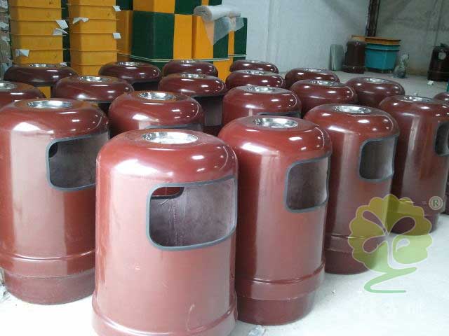 2、該玻璃鋼垃圾(jī)桶桶身上烤漆上色,簡潔美觀,自然大方,為環保戶外垃圾桶.