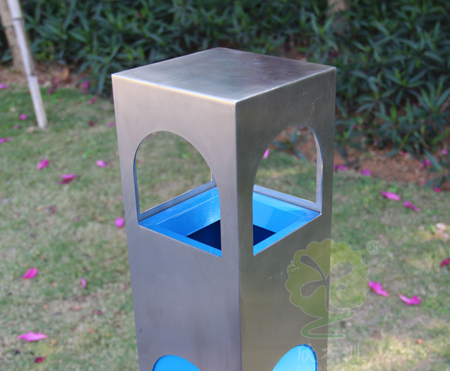 C635戶外吸煙柱采用(yòng)優質不鏽鋼剪切、組裝、焊接、絲印而成(chéng),不鏽鋼具有很(hěn)好(hǎo)的堅(jiān)固耐用,防水防鏽,時尚美(měi)觀作用。它包括外套管(guǎn)、支座、內套(tào)管、煙灰盒、底座。外套管的底端固定連接在支(zhī)座上,外套管的側(cè)壁上設有煙(yān)蒂置入口,內套管用於集中收納從(cóng)外套管的煙蒂置入口投入的煙蒂,內套管設(shè)在外套管的內(nèi)管腔中,內內(nèi)套管的開口端朝上,煙蒂置入口與內套管的開口相連通,以使得從煙蒂置(zhì)入口投入的煙蒂可從內套管的開口端落入到內(nèi)套管的內管(guǎn)腔中;