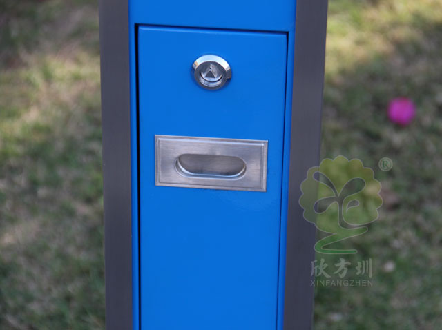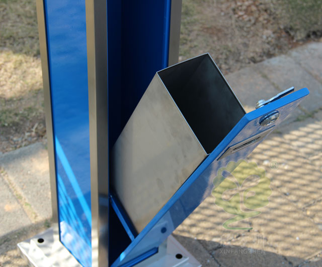 C635戶外(wài)吸煙柱規格250*250*1180mm,呈長條傳,側麵有三角鑰匙,可以打開側門,方(fāng)便清理位於內套管的煙蒂煙灰,底座分兩種,一種是室內采用的,在底部裝有防滑墊,一種是戶外采用的,底部使用膨脹螺(luó)絲固定。