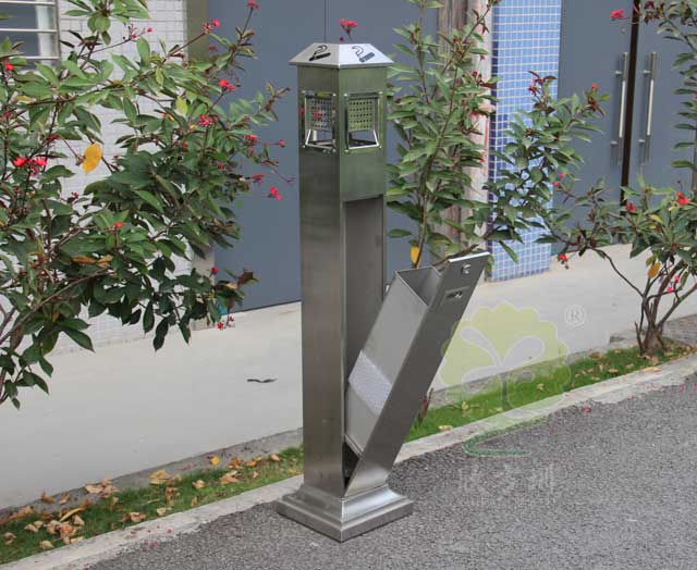 C-279C金屬煙灰(huī)柱采用優質不鏽鋼剪切、組裝、焊接、絲印而成,它包括外套管、支座、內套管、煙灰盒、底座。外套管的底端固定連接在支座上,外(wài)套管的側壁上設有(yǒu)煙蒂置入口,內套管用於集中收納從外套管的(de)煙蒂置入口(kǒu)投入的煙蒂(dì),內套管(guǎn)設在外套管(guǎn)的內管腔中,內內套管的開口端朝上,煙蒂置入(rù)口與內套管(guǎn)的開口相連通,以(yǐ)使得從煙蒂(dì)置入口投入(rù)的煙蒂可從內套管的開口端落入到內套管(guǎn)的內管腔中;