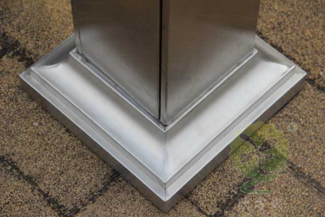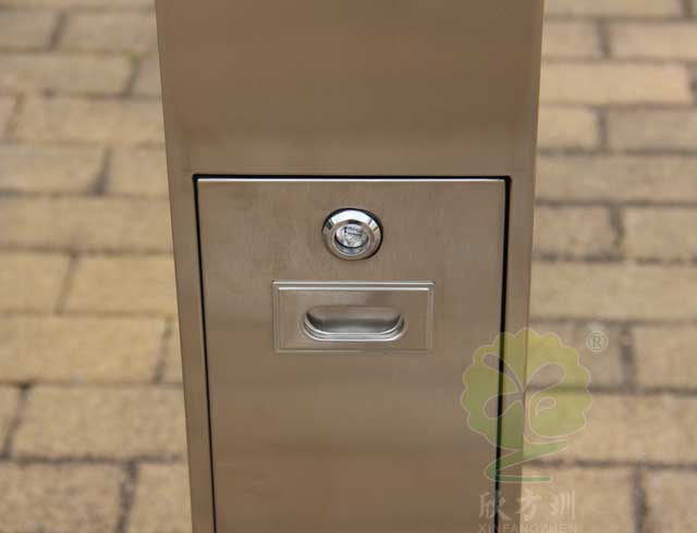 C-279C金屬煙灰柱規(guī)格250*250*1185mm,呈長條(tiáo)傳,側麵有三角鑰匙,可以(yǐ)打開側門,方(fāng)便清理位(wèi)於內套(tào)管的煙蒂(dì)煙灰,底座分兩(liǎng)種,一(yī)種是(shì)室內采用的(de),在底部裝(zhuāng)有(yǒu)防滑墊,一種是戶外采(cǎi)用的,底部使用膨脹螺絲固定。
