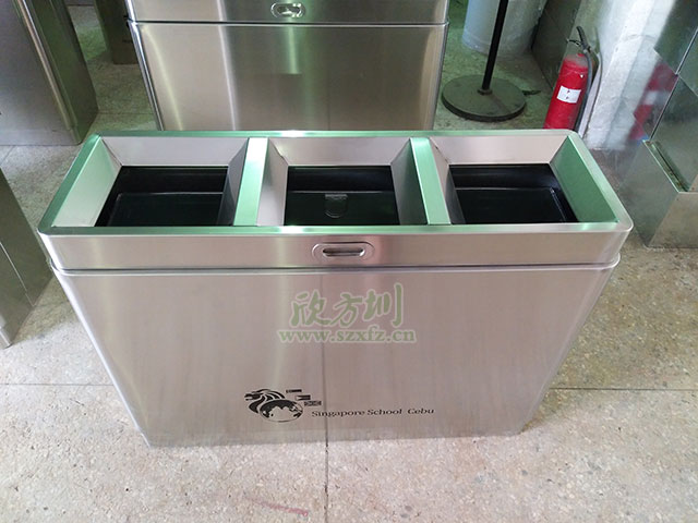 不鏽鋼三91蝌蚪九色(lèi)垃圾桶遠銷(xiāo)新加坡國際學校