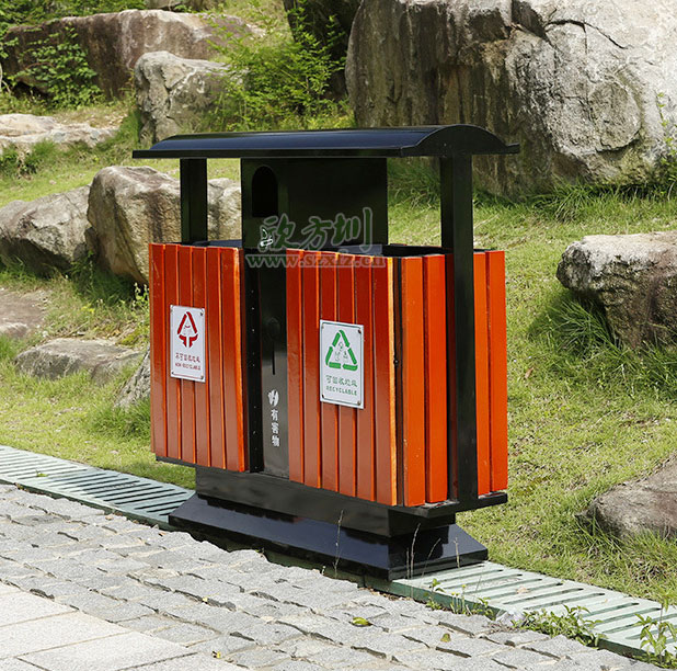 鋼木(mù)木條垃圾桶(tǒng)都是采用(yòng)的防腐木材質製作而成,例如這款欣方圳的G97戶外鋼垃圾桶,其木材(cái)常采用鬆(sōng)樹樹種,但是在做成成品之(zhī)前,木材均要(yào)經過防腐(fǔ)藥水浸泡,烘幹(自然晾幹或是高溫烘幹),噴漆(qī)等工藝,經過這些工藝的製作,使傳統一(yī)般的木材變(biàn)得具有很好的防腐蝕(shí)性和防潮的功效。