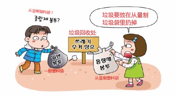 “垃(lā)圾(jī)從量製”顧名思義就是要(yào)量化垃圾,根據(jù)垃(lā)圾(jī)的量來收取處理費用的一種製度(dù)。這個製度規定市民們(men)要到自己所住區域的指定商店去購買(mǎi)盛放垃圾的專用垃圾袋,將垃圾分(fèn)類裝在不同類別的袋子中,例如:食品(pǐn)垃圾袋、一般垃圾袋(dài)等。垃圾也不是隨時隨地可以(yǐ)扔,要在規定的時間內,用專用垃圾袋把垃圾封好並投放到規定地點,否則市民還會(huì)麵(miàn)臨相應罰款(kuǎn)。專用垃圾袋的大小不一,容量越大,價(jià)格也越貴(guì)。也就(jiù)是說,韓國市民們需要花錢(qián)購買扔垃圾的塑料袋!並且價格還不(bú)便宜,經(jīng)過2017年年初的漲價之後,目(mù)前每個家用食品(pǐn)垃(lā)圾袋的價格在(zài)人民幣6毛到6元之間,每個一般垃圾袋(dài)的價格在人民幣8毛到15元(yuán)之間。