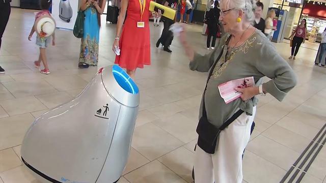 BARYL正在巴黎裏昂(áng)火車站(zhàn)測試垃圾桶小發明