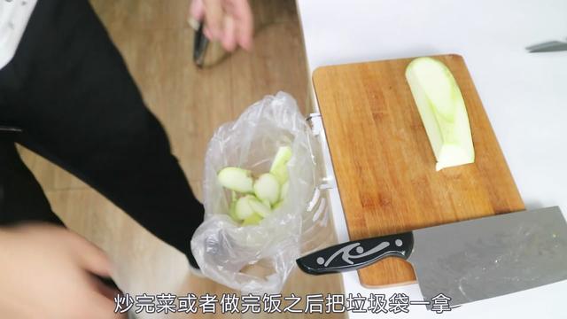 或者是我們買東西時用到(dào)的方便袋就可以,我們把它套在我們的神器上,這時我們隻需這樣輕輕一劃,炒完菜或(huò)者(zhě)做(zuò)完(wán)飯之後把(bǎ)垃圾袋一拿(ná),這樣所有的垃圾一(yī)掃而(ér)光。