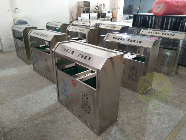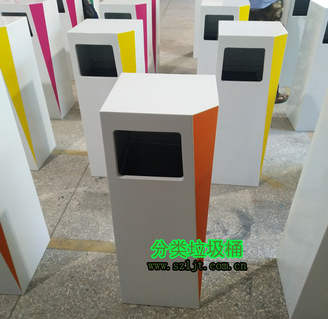 鋼製噴塑分(fèn)類垃圾桶:使用優質鋼木剪裁、衝孔、折(shé)彎、組裝、焊接、打磨、噴(pēn)塑、絲印而成,外表美觀,功能實(shí)用,適用於街道、學校、景區、廣場、小區等各種戶外場所。