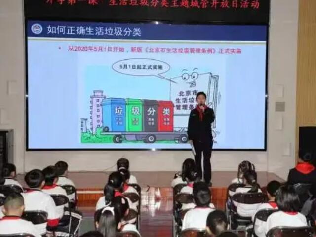 北京市城管執法局、朝陽區城管執法局、勁鬆街道在陳經綸中學帝景分校聯合開(kāi)展“開學第一課”生活垃圾(jī)91蝌蚪九色主題城管開放日活動。