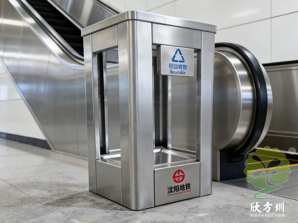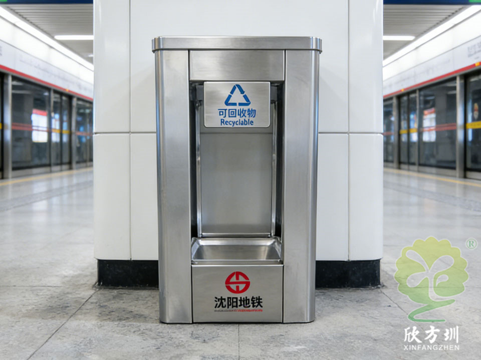 它們靜立在站台兩端,通體由(yóu)不鏽鋼鑄成,線條利落如沈陽(yáng)冬(dōng)日結霜的枝椏。最引人注目的,是桶(tǒng)身(shēn)鑲嵌的大幅透明視窗。其後,藍、綠、灰、紅四色內膽清(qīng)晰可見,標識著可回收物、廚餘垃圾(jī)、其他垃圾與有害垃圾的清晰歸途。金屬(shǔ)的冷冽質感與視窗的透明柔和,奇妙地(dì)融為一體,仿佛工業的嚴謹與文明的通透在此握手言和。