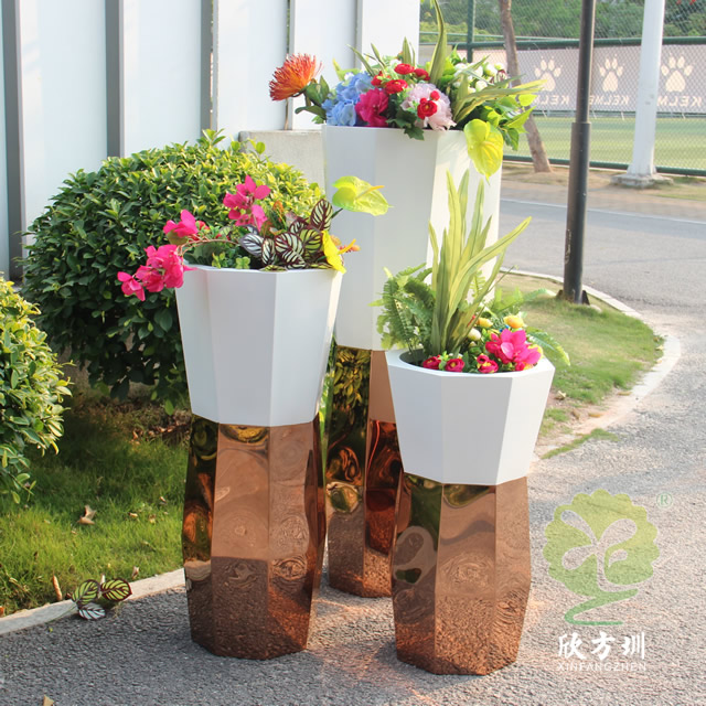 一、菱形噴塑白色玫瑰金不鏽(xiù)鋼花盆組合的優(yōu)點有哪些