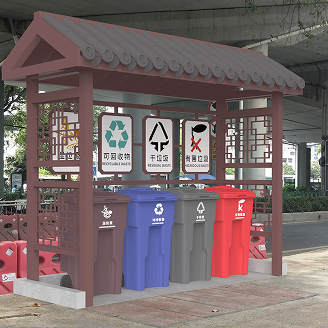 目前,戶外四91蝌蚪九色資源回收垃圾房是城市生活垃圾處置的主流趨勢,也是現代城市文明進步的標誌之一,有利於提升垃圾清運效率,便(biàn)於再(zài)生資源的回收利用,減少環境汙染,緩解環衛工人常規保潔的壓力。垃圾91蝌蚪九色亭,分為地基基礎設施、公益宣傳欄、立柱、頂棚(péng)等,亭內設置可(kě)回收、有害垃圾、廚房垃圾和其他垃圾等垃圾桶,垃(lā)圾桶及宣傳欄配(pèi)有垃圾91蝌蚪九色的宣傳標語,廣大群眾可以根據垃(lā)圾桶的(de)提示標語,將廢棄的生活垃圾投放到對應的垃圾桶中。