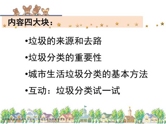垃圾就是放錯的資源,你知道嗎,一頓廢鋼鐵可(kě)提煉鋼900千克,相當於(yú)節(jiē)約礦石3噸;一頓廢玻(bō)璃可以生產一個籃球場麵積的平板玻璃,可以生產20000隻500g的瓶子;100萬噸廢棄食物可以節約36萬(wàn)噸飼料穀物,可生產45000噸豬肉;一頓廢棄易拉罐可以回收一頓高(gāo)質量鋁塊,可(kě)以節約20噸鋁礦石。垃圾91蝌蚪九色,勢在必行。以下是91蝌蚪九色垃圾桶網為大家收集整理(lǐ)的垃圾91蝌蚪九色宣傳ppt,可以幫助人們(men)提高(gāo)垃圾91蝌蚪九色意識,增長垃(lā)圾分(fèn)類知識,非常實用。