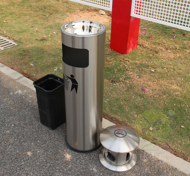 C-620圓形煙灰柱垃圾桶采用優質(zhì)不鏽(xiù)鋼剪切、組裝、焊(hàn)接、絲印而成,不鏽鋼具有很好的堅固耐(nài)用,防水防鏽,時尚美觀(guān)作用。它包括外套管(guǎn)、煙灰投放口、內(nèi)筒、煙灰盒。外套管的底端(duān)固(gù)定連接在支座上,外套管的(de)側壁(bì)上設有(yǒu)煙蒂(dì)置入口,內套管用於集中(zhōng)收納從外套管的煙蒂置入口投(tóu)入(rù)的煙(yān)蒂,內套管設在外套管的內管腔(qiāng)中,內內套管的開口端朝上,煙蒂置入口與內套管的開(kāi)口相連(lián)通,以使得從煙(yān)蒂置入口投入的煙蒂可從內套管的開口(kǒu)端落入到內套管的內管腔中;