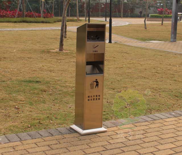 C-620圓形煙灰柱垃圾桶采用優質不鏽(xiù)鋼(gāng)剪切、組裝、焊接、絲印而成,不鏽鋼具有很好的堅固耐用,防水防鏽(xiù),時尚美觀作用。它(tā)包括外套管、煙灰投放口、內筒、煙灰盒。外套管的底端固(gù)定連接在支座上,外套管的側壁上設有煙蒂置入口,內套管用於集中收納從外套管的煙蒂(dì)置入口投入的(de)煙蒂,內套管設(shè)在外套管的內管腔中,內內套管的開口端(duān)朝上,煙蒂置入口與內套(tào)管的開口(kǒu)相連通,以使得從煙蒂置入口投(tóu)入的煙蒂可從(cóng)內套管的開口端落入到內套管的內管腔中。
