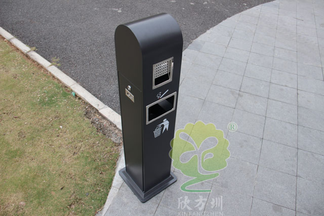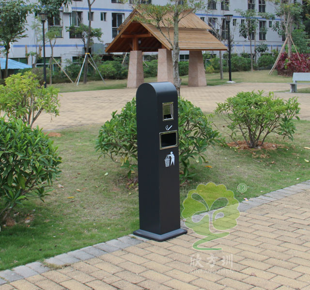 C629烤漆吸(xī)煙柱規(guī)格320*320*1200mm,呈方形,側麵(miàn)有三角鑰匙,可以打開側門,方便清理位(wèi)於內套管的煙蒂煙灰,底座分兩種,一種(zhǒng)是室內采用的(de),在底部裝有防滑墊,一種是戶外采用的,底部(bù)使用膨脹螺絲固定。外形兼具美觀性(xìng)和功(gōng)能性(xìng),實現煙蒂垃圾雙投放功能(néng),上部分收集煙灰煙蒂,下部分(fèn)收集果皮(pí)垃圾。隔緣分(fèn)離,杜絕火災。