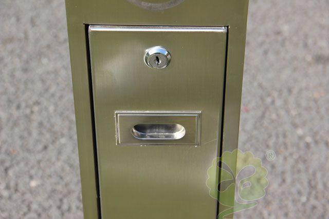 C618室外街道滅煙柱規格248*248*1175mm,呈長條傳(chuán),側麵有(yǒu)三角鑰匙,可以打開側門,方便清理位於內套管(guǎn)的(de)煙蒂煙灰,底座(zuò)分(fèn)兩種,一種是室(shì)內采用的,在底部裝有(yǒu)防滑墊,一種是戶外采用的,底部使用膨脹螺絲。