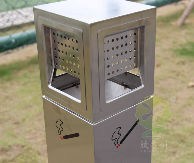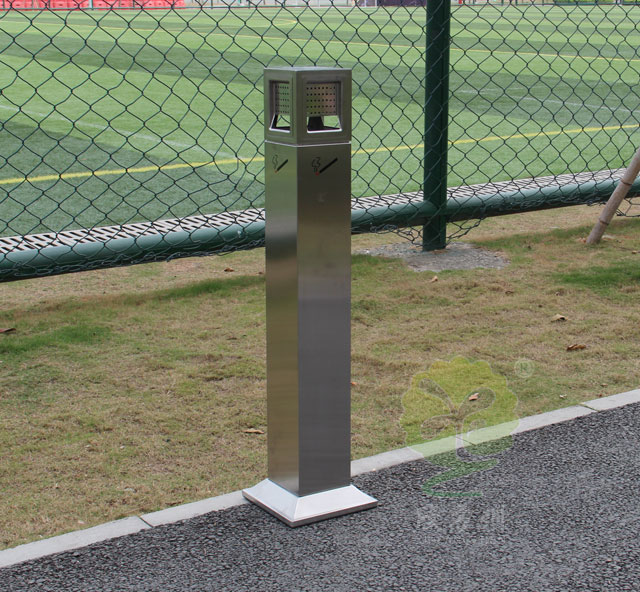 C280方形不鏽鋼滅煙柱采用優質不鏽鋼剪切、組(zǔ)裝、焊接、絲印而成,它包括(kuò)外套管(guǎn)、支(zhī)座、內套管、煙灰盒、底座(zuò)。外套管的底端固定連接(jiē)在(zài)支座上,外套管的側壁上(shàng)設有煙蒂置入口,內套管用於(yú)集中收納從外套管的煙蒂置入口投入的煙蒂,內套管設在外(wài)套管的內管腔中,內內(nèi)套管的開口端朝(cháo)上,煙蒂置入(rù)口與內套管的開口相連通,以使得從煙蒂置入口投(tóu)入的煙蒂可(kě)從內套管的開口端落入到內套管的內管腔中;