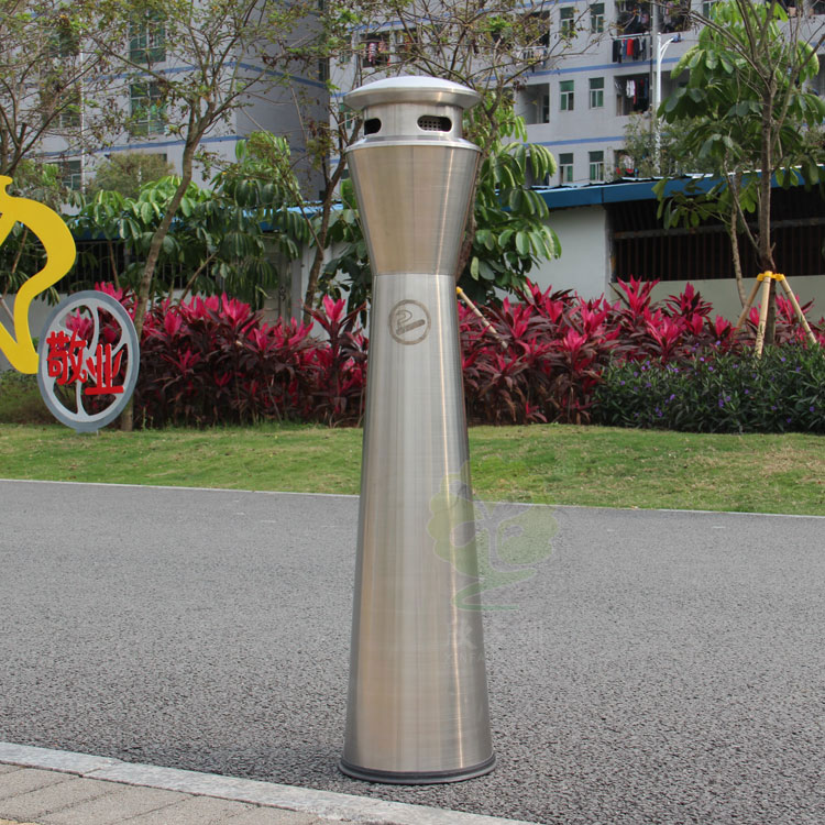 生產廠家推(tuī)薦圓柱式滅煙柱采用優質不鏽鋼剪切、組裝、焊接、絲印而成,它包(bāo)括外套管、支(zhī)座、內套管、煙(yān)灰盒、底(dǐ)座。外套管的底端(duān)固定連接在支座上,外套管的側壁上設有煙(yān)蒂置入口,內套管(guǎn)用於集中收納從外套管的煙蒂(dì)置入口(kǒu)投入的煙蒂,內套管設在外套管的(de)內管腔中,內內套管的(de)開口端朝上,煙蒂置入口與內套管的(de)開口(kǒu)相連(lián)通,以使得從煙蒂置入口投入的煙蒂可從(cóng)內套管的開口端落入到內套管的內管腔(qiāng)中;
