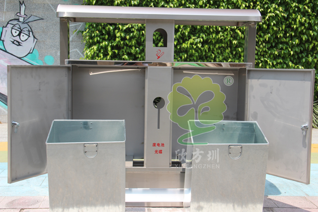 桶身(shēn)有向兩側打開的門,內(nèi)部(bù)放置鍍鋅板內(nèi)桶,內桶光滑摩擦小,不利於垃(lā)圾殘留,方便環衛工人清倒垃(lā)圾。與其他的(de)隻有一(yī)層的垃圾桶(tǒng)比較,帶內桶的雙層(céng)垃(lā)圾桶更幹淨,因為這種垃圾桶非常方便清潔(jié)清洗(xǐ),隻需要將幹淨內(nèi)桶與髒的更換就(jiù)行。能夠清洗的垃圾桶不會有垃圾殘留,不會滋生(shēng)細菌病毒,不會產生腐爛臭味,不會吸引蚊蟲鼠蟻,對於城市衛生的清潔、城市麵(miàn)貌的提升效果非常大。