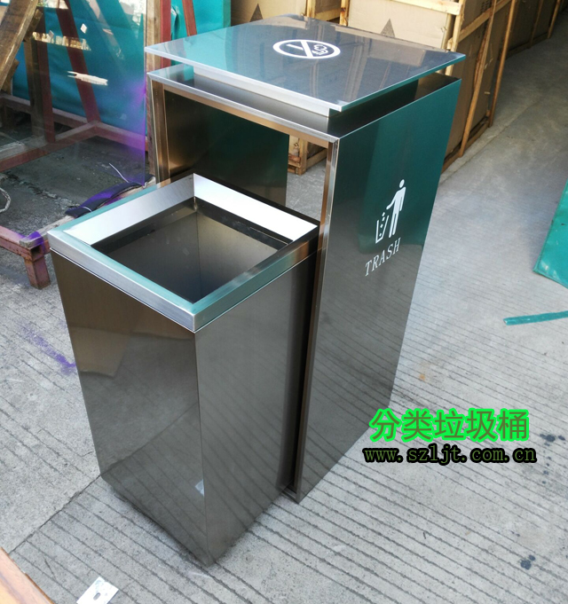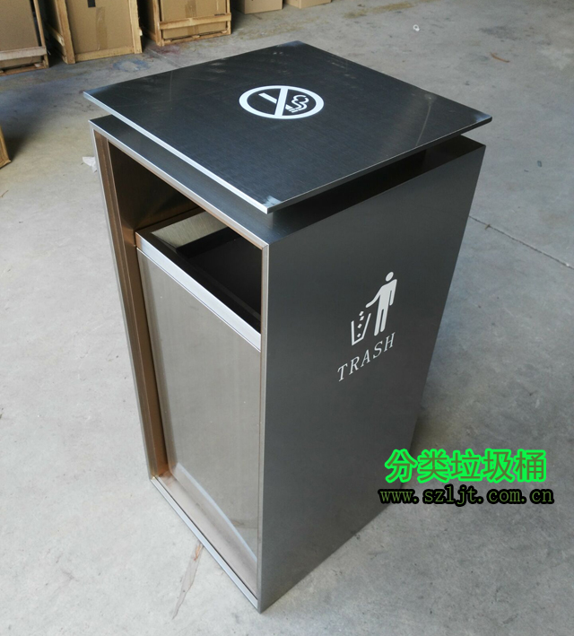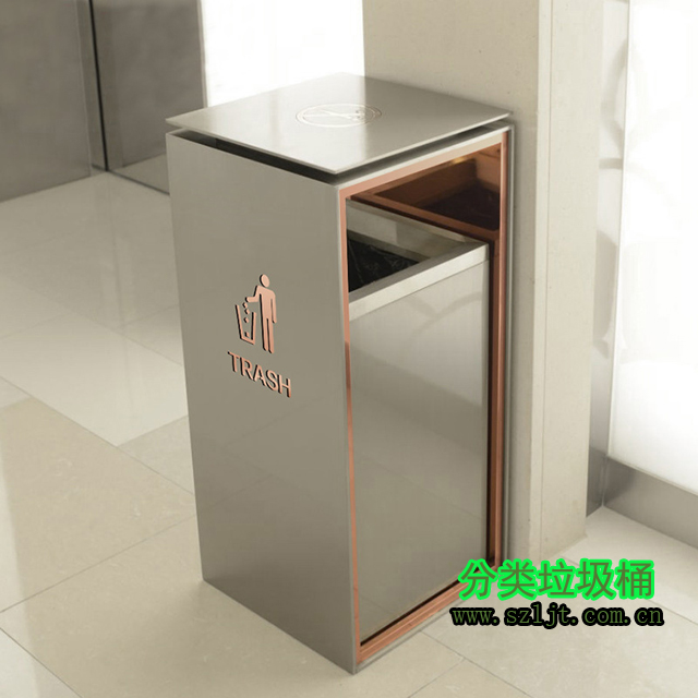室內(nèi)方形(xíng)不鏽鋼禁煙標誌(zhì)垃圾桶型號xfz-413,規格780*350*350,屬於經典(diǎn)室內方形垃圾桶款式,垃圾桶身使用304不鏽鋼材(cái)質切割(gē)、折(shé)彎(wān)、焊(hàn)接而成,然後在表麵電鍍一層其(qí)他(tā)金屬,保護桶身避免氧化生鏽,使(shǐ)其看起來光滑亮麗。內置鍍鋅內膽可以(yǐ)從自由取出放進,方便置換清洗,保證垃圾桶幹淨如新。垃圾桶設計充滿現代時尚感,非常適合酒(jiǔ)店、賓館、辦公樓、會所等高檔商務場(chǎng)所。