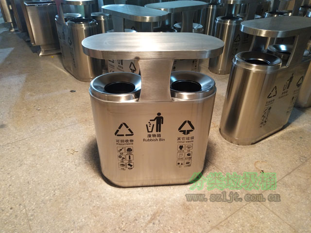 【產品顏色】:以不鏽鋼材質本色為底色,絲印的(de)圖案用黑河表示,分別(bié)代表可回收物也其他垃圾兩大類;顏(yán)色對(duì)比(bǐ)鮮(xiān)明和諧,簡潔大方,實用美觀,還可根據客戶需求定製。