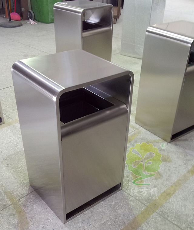 卓越品質、精湛工藝‘、時尚外(wài)觀是XFZ-C355室內方形不鏽鋼垃圾桶的優點,它以優質303#不鏽鋼剪裁、組裝、焊接而成(chéng),卻渾然天成(chéng)、嚴絲合縫、看不到一點縫隙和焊接痕跡。完美的折彎(wān)曲線非常考驗製作工人的手(shǒu)藝,這種曲線(xiàn)不僅僅代表了美的藝術,更是實際使(shǐ)用過程中積累的(de)智慧與經驗結晶(jīng)。它(tā)能很好的防止人群磕傷碰傷,保護附近人流的安(ān)全。加厚的桶身讓垃圾桶更加的堅固耐(nài)用,看起來更高檔更(gèng)有質感,這種高檔優質的外形讓(ràng)它非常適合擺放於辦公(gōng)樓、酒店大堂、商場等奢華場所。桶底(dǐ)配有防滑墊,無(wú)需使用螺絲就能(néng)起著很好的固定作用,還能防止地麵刮花,專門(mén)為(wéi)室內場所設(shè)計。