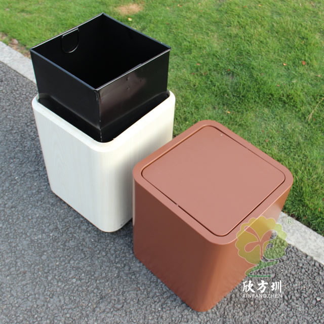 室內仿木紋方形不鏽鋼果皮箱的特點: