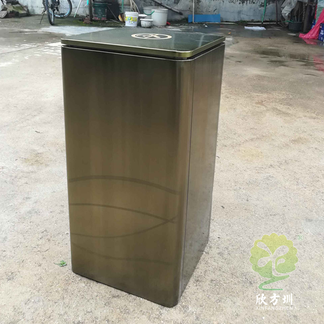 青古銅色商場不鏽鋼果皮箱是欣方圳設計生(shēng)產的一(yī)款經典高檔垃圾(jī)桶,這款垃圾桶雖然使用(yòng)不鏽鋼製(zhì)作(zuò)而成,但是外形采用了青色仿古銅豎行(háng)拉(lā)絲和做了防指紋處理,使其看起來有一股自然青色仿古銅氣質,特別適合各種室(shì)內外(wài)購物商場、電梯口、等場景(jǐng)使用。這款不鏽鋼垃圾桶外表經過防腐工藝處理,防水防腐蝕、經久耐用、工藝精湛、物美價(jià)廉。如果你對這(zhè)款(kuǎn)垃圾桶感興趣,請直接聯係我們報價。