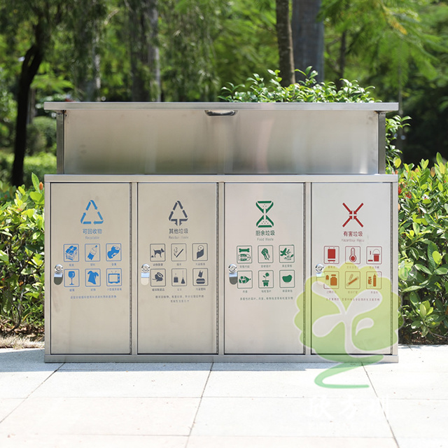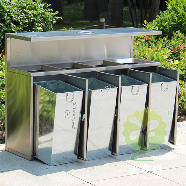 戶外市政街道四連體不鏽鋼垃圾箱(xiāng)是欣方圳設(shè)計生產的一款(kuǎn)經典(diǎn)熱(rè)銷垃圾桶,這款垃圾桶雖然使(shǐ)用不喜歡製作而(ér)成,但是外形采用了方形單筒,使其看起來有一股自然大方氣質(zhì),特別適合各種曆史景區、戶外(wài)公園、別墅小區(qū)、學校廣場等場(chǎng)景使用(yòng)。這款垃圾桶外(wài)表經過防腐工藝處理,防水(shuǐ)防腐蝕、經久耐用、工藝精湛、物美價廉。如果你對這款垃圾桶感興趣,請直接聯係我們報價。
