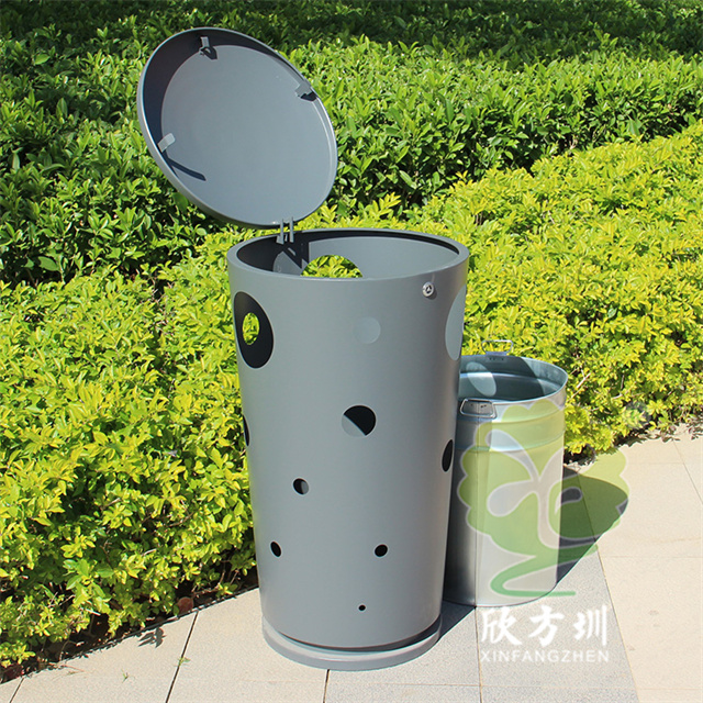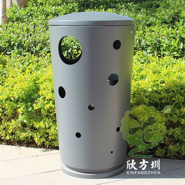 戶外鏤空圓(yuán)柱形不鏽鋼垃圾桶是欣方圳設計生產的一款經典高檔垃圾桶,這款垃圾桶雖然(rán)使用不鏽(xiù)鋼(gāng)製作而成,但是外形采用(yòng)了灰色色噴塗噴塑(sù)和做了防指紋處理,使其看起來有一股自然(rán)灰色高檔氣(qì)質,特別適合各種戶外物業小區、公園景區、城(chéng)中(zhōng)村、等場景使用。這款不鏽鋼垃圾桶外表經過防(fáng)腐工藝處理,防水防腐蝕、經久耐用(yòng)、工藝精(jīng)湛(zhàn)、物美價廉。如果你對這款垃圾桶感興趣,請直接聯係我(wǒ)們(men)報價。