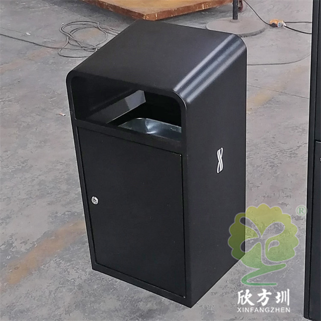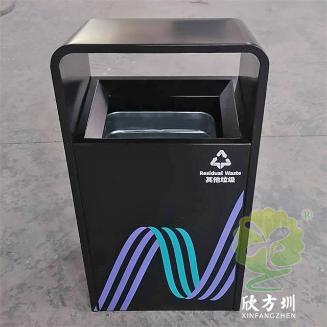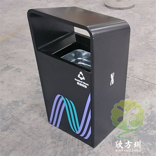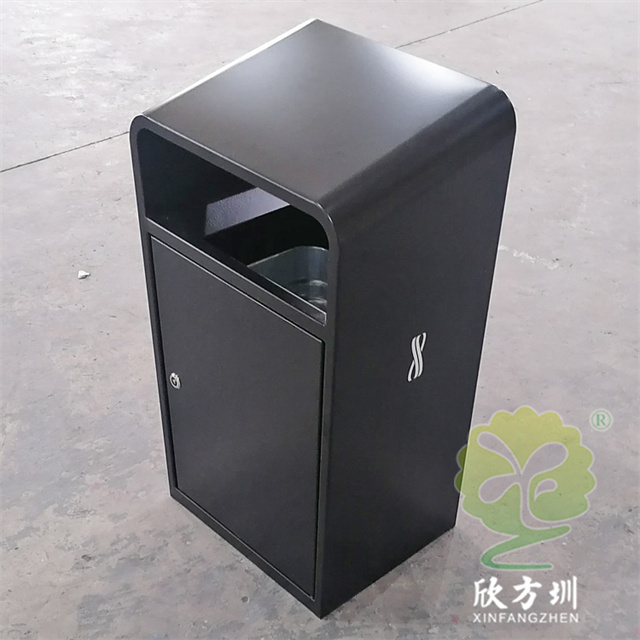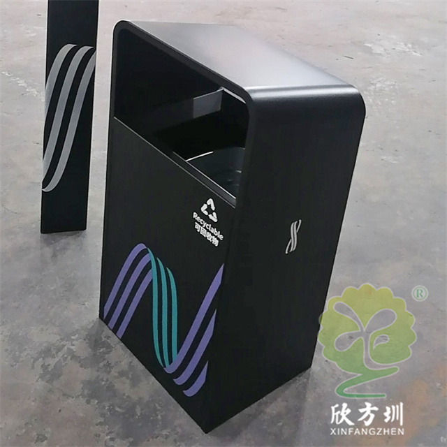 戶外廣場加厚不鏽鋼垃圾(jī)桶果皮箱這款外筒201不鏽鋼 1.5mm 厚度生產,桶身整體黑色噴塑(sù)烤(kǎo)漆,絲印企業logo和91蝌蚪九色標識,UV打印彩色圖案,方形單筒頂部(bù)坡麵前(qián)高後低設(shè)計,背麵可以使用三(sān)角鑰匙取出內置的內筒(tǒng),可以根據客戶要求定做。