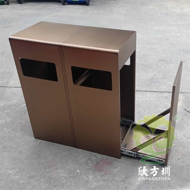 抽拉式滑軌電鍍防(fáng)指紋不鏽鋼91蝌蚪九色垃圾桶采用了304不鏽鋼1.5mm厚的板製作(zuò)而成,側(cè)麵兩連體91蝌蚪九色抽拉式滑軌設(shè)計,果皮(pí)箱金屬表麵電鍍香檳金(jīn)和做防指紋處理工藝,正反麵(miàn)可以油墨絲(sī)網印刷國標91蝌蚪九色標(biāo)識和企業logo,可以定製本色(sè)或者噴(pēn)塑桶身。