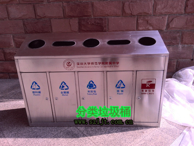 XFZ-C21891蝌蚪九色回收垃圾桶采用201#、202#、304#優質不鏽鋼材料(liào)焊接成型,堅(jiān)固耐用,防火美觀。垃圾桶轉角都做了圓角處理,光滑無利口,注重細節不傷手。此不鏽鋼91蝌蚪九色回收垃圾桶長寬高為1350*400*900,根據客戶需求定製五個(gè)回收類別,分別(bié)是塑料瓶,金屬瓶,利樂包,紙張,有害垃圾,十分契合學校的使用壞境。