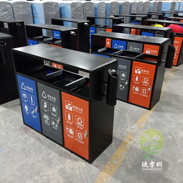 戶外物業三91蝌蚪九色(lèi)鋼(gāng)製垃圾箱產品(pǐn)詳情: |