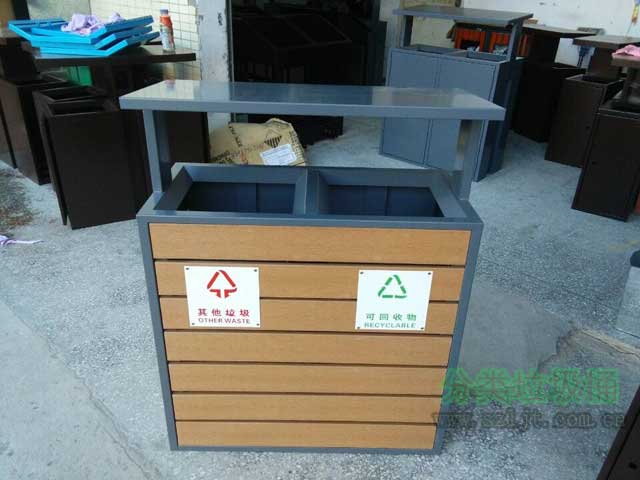 廠(chǎng)家定(dìng)製鋼木分(fèn)類垃(lā)圾桶長900mm,寬400mm,高950mm,桶身采用優質進(jìn)口防腐木、進口山樟木或水曲柳製作,可抑(yì)製生物、微生物的寄生、繁殖與侵蝕,延長木材在戶外環境中的使用壽命。表(biǎo)麵經過除蟲,防蟻,防腐(fǔ),烘幹(gàn)等專業處(chù)理後加工成型,經久耐用,防腐美觀。桶蓋/內膽采(cǎi)用FRP玻璃鋼材料製造,具有防(fáng)腐、防生鏽、易清潔等特點。底座采用玻(bō)璃鋼纖(xiān)維製(zhì)作,從根本上解決了防腐、防盜、生鏽的問題,產品在戶外的使用壽命大大增強。此款垃圾桶無論是從外觀(guān),性能還(hái)是(shì)環保方麵來講都十(shí)分優(yōu)越,尤其適合擺放在花園(yuán),公園,小區,學校,街道,遊樂園等場所,備受(shòu)客戶(hù)青睞(lài)。