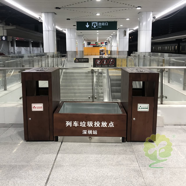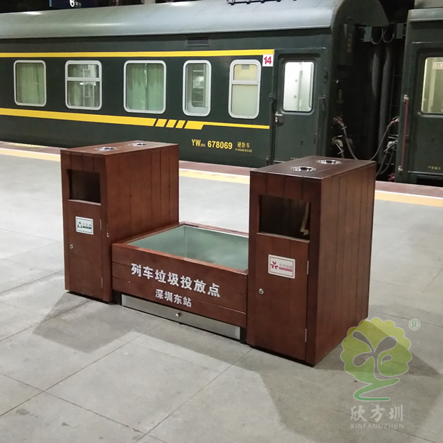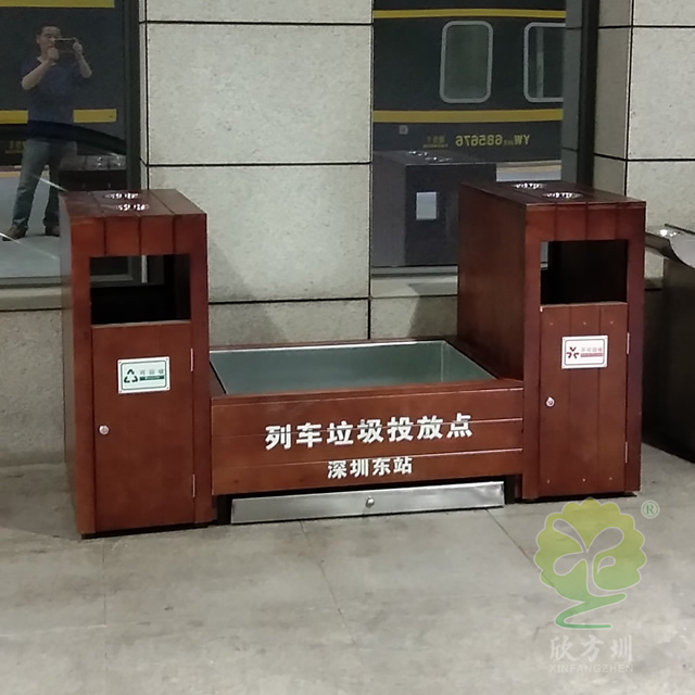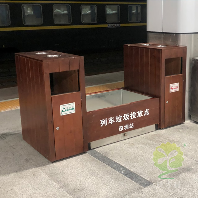 火車站(zhàn)大型鋼木91蝌蚪九色垃圾(jī)箱