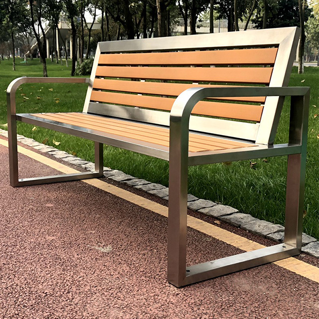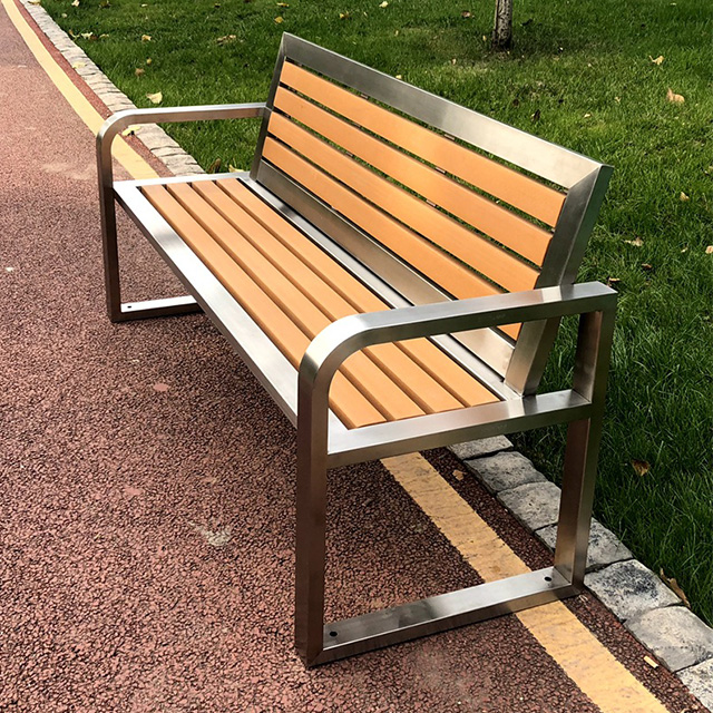戶外帶靠(kào)背(bèi)扶手不鏽鋼休閑椅采用碳鋼板材和柳桉木製作而成,我們嚴格把握(wò)各個工藝環節,外觀簡約,線條優雅(yǎ),時尚簡約,防腐防鏽,適用於(yú)廣(guǎng)場,商場,公園,景區,街道,商業街,道路等公共場所。
