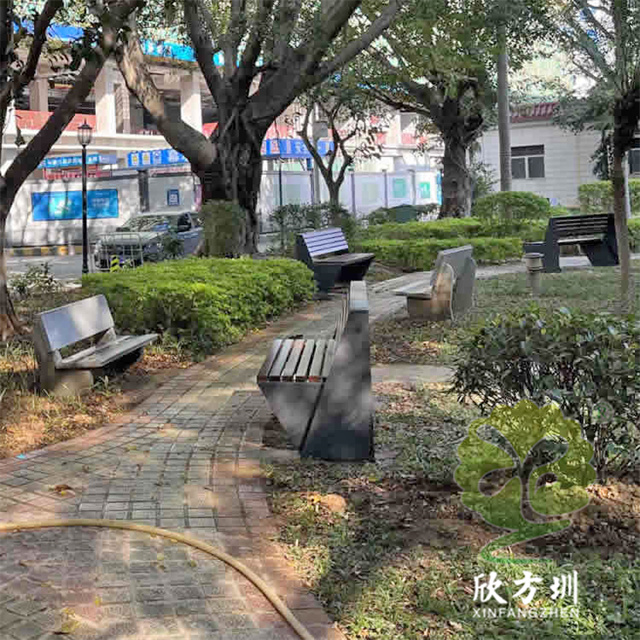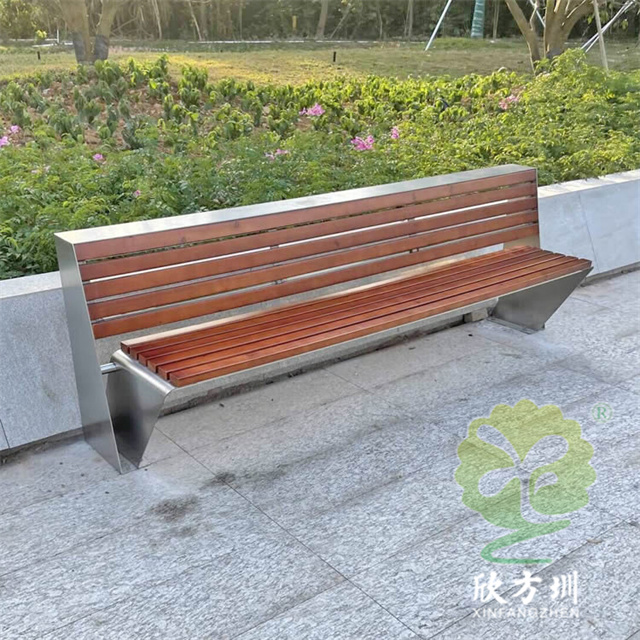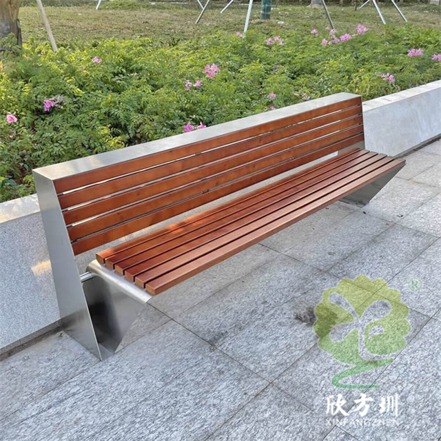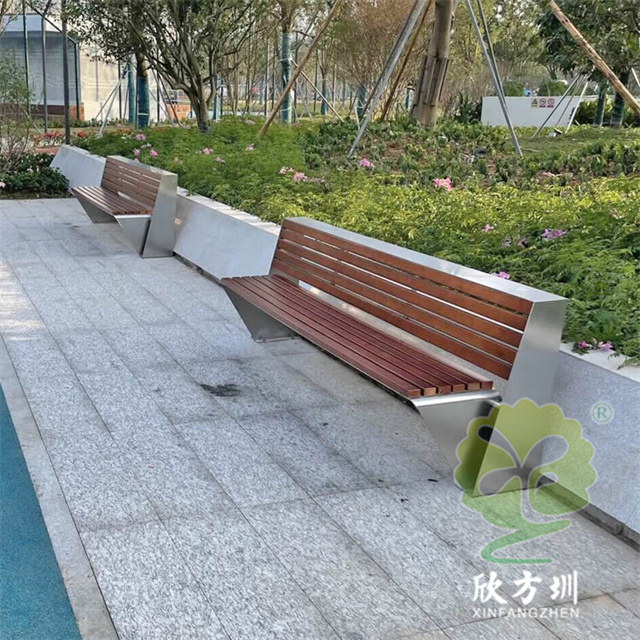 不鏽鋼座椅公園椅:整體外觀和普通的公園椅座椅一(yī)樣,但是(shì)該公園椅(yǐ)座椅的椅條由防腐木換成了等長的不鏽鋼鋼柱,帶有靠背設計,整體框架采用一體化焊接技術,美觀又耐用。